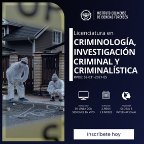 Forma parte de un programa internacional en Criminología y Criminalística, diseñado para profesionales que buscan actualización global y excelencia académica.